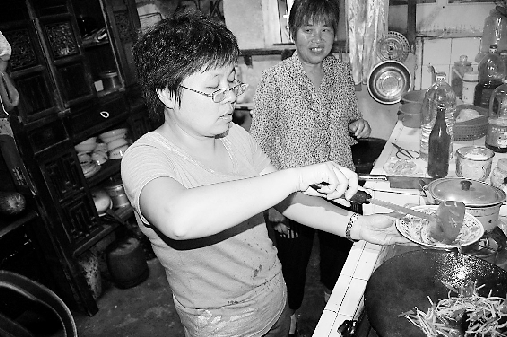 方亚儿和“姆妈”章勉芬一起在厨房做饭。